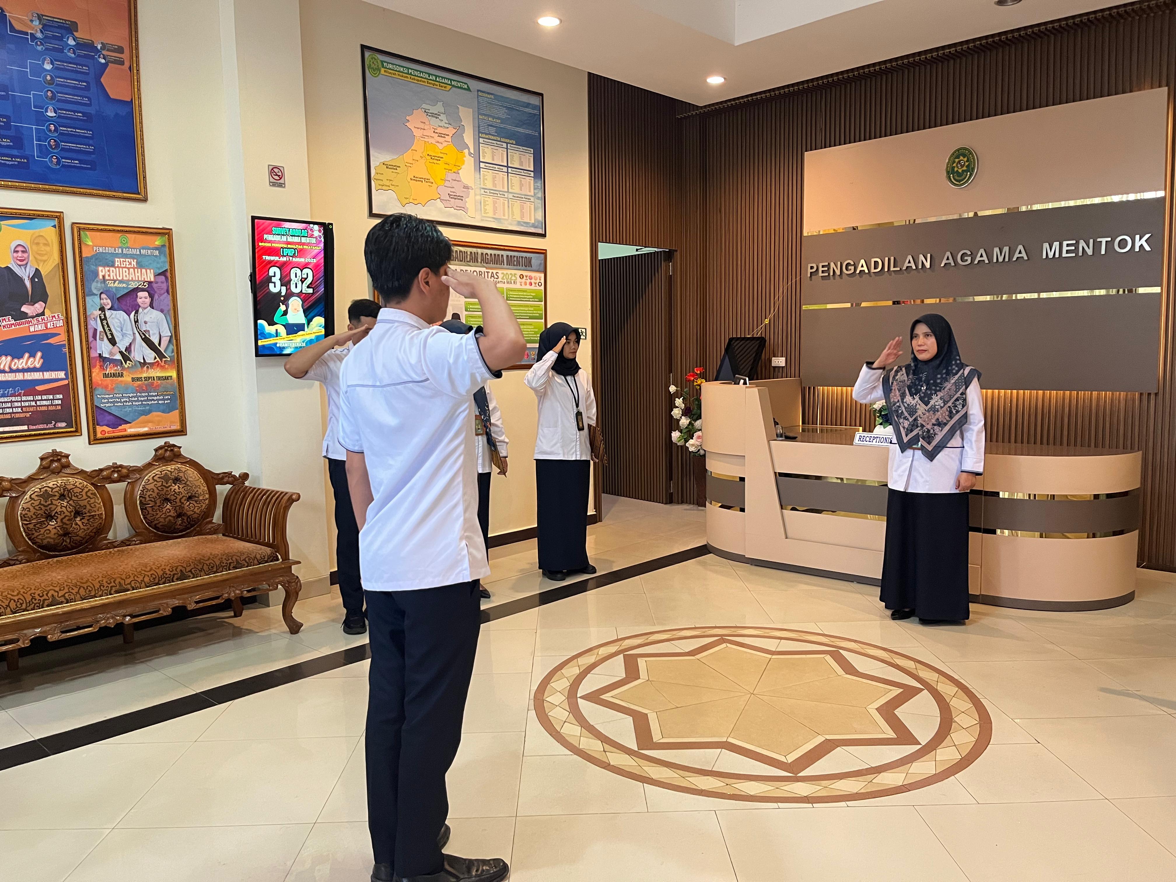Ibu Komariah menambahkan bahwa sikap disiplin dan semangat seperti inilah yang mencerminkan integritas dan profesionalisme aparatur peradilan. Ia menilai bahwa cuaca tidak seharusnya menjadi penghalang dalam menjalankan tugas dan kewajiban sebagai abdi negara. Kehadiran para pegawai menjadi bukti komitmen yang kuat terhadap pelayanan publik. Dalam kesempatan tersebut, Wakil Ketua PA Mentok juga mengingatkan kembali pentingnya menginternalisasi dan mengamalkan delapan nilai utama Mahkamah Agung, yaitu: kemandirian, integritas, kejujuran, akuntabilitas, responsibilitas, keterbukaan, ketidakberpihakan, dan perlakuan yang sama di hadapan hukum. Menurutnya, nilai-nilai ini harus menjadi pedoman dalam setiap tindakan dan keputusan di lingkungan peradilan.