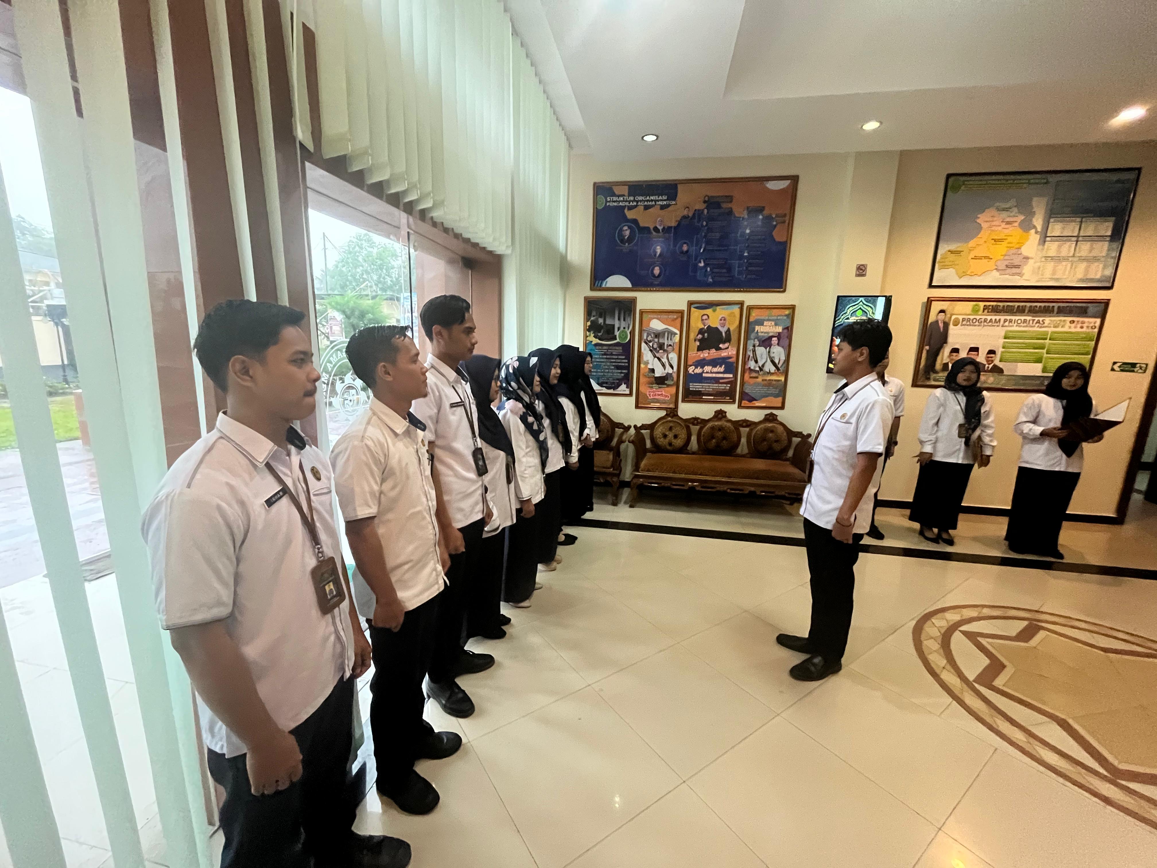 www.pa.mentok.go.id. Mentok, Senin 29 September 2025 – Pengadilan Agama (PA) Mentok tetap melaksanakan apel pagi rutin meskipun cuaca kurang bersahabat. Hujan lebat yang mengguyur sejak pagi hari membuat pelaksanaan apel dialihkan ke ruang depan (resepsionis) kantor PA Mentok. Meskipun digelar di ruang terbatas, kegiatan apel tetap berlangsung khidmat dan tertib. Wakil Ketua PA Mentok, ibu Komariah, S.H.I., M.E., bertindak sebagai pembina pada apel papgi ini. Dalam amanatnya, beliau menyampaikan apresiasi kepada seluruh pegawai yang tetap hadir dan bersemangat mengikuti apel meskipun cuaca tidak mendukung. “Saya sangat mengapresiasi semangat rekan-rekan semua. Hujan deras tidak menjadi alasan untuk mengabaikan tanggung jawab dan disiplin,” ujarnya.