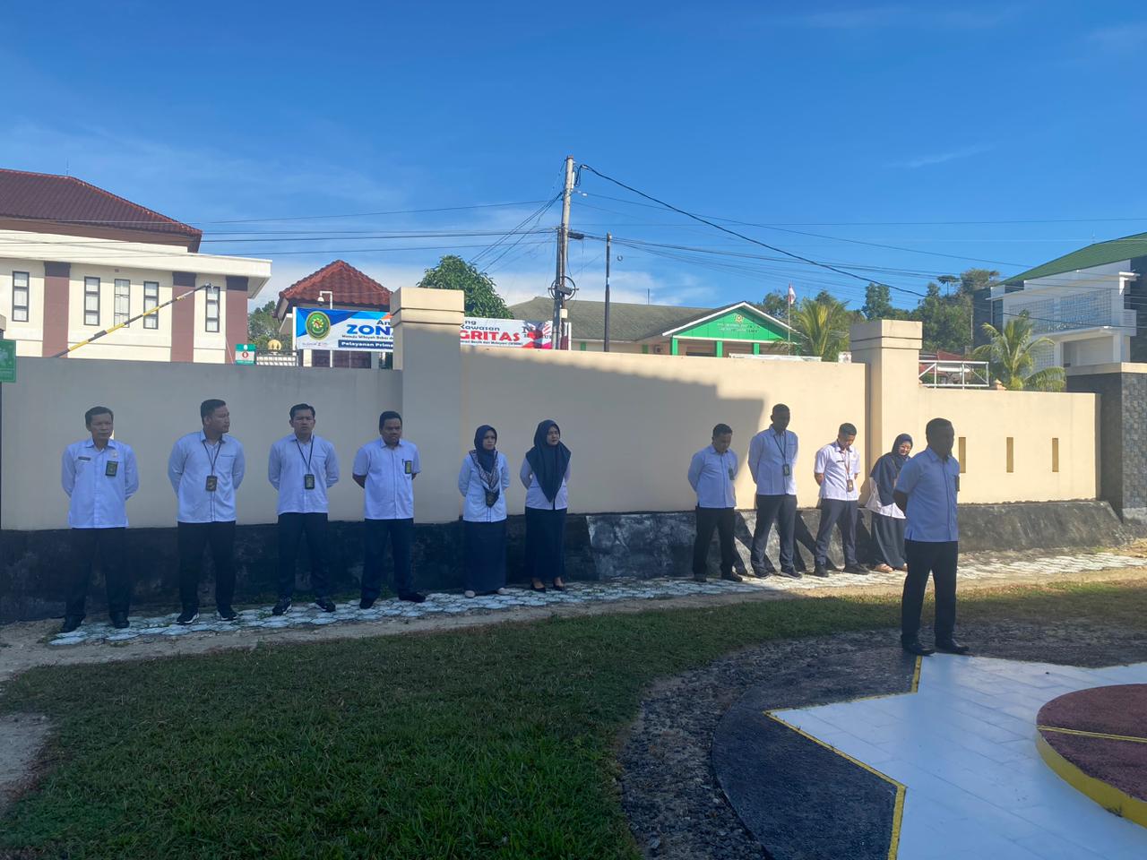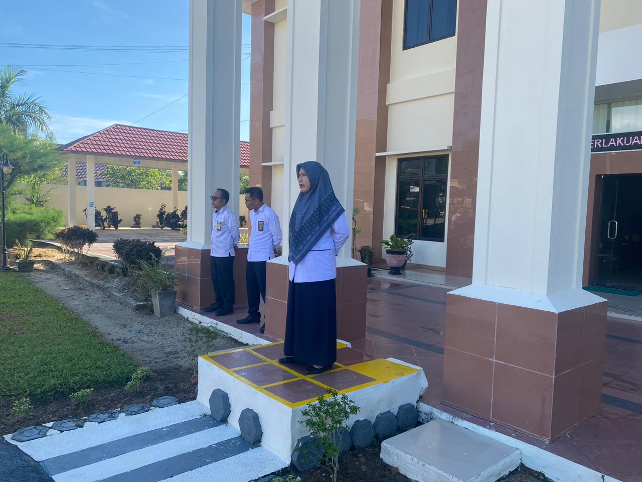 This email address is being protected from spambots. You need JavaScript enabled to view it. Mentok, 20 April 2026 – Pengadilan Agama Mentok menggelar apel pagi rutin yang dipimpin oleh Apriantoni,S.H. dengan Pembinaan oleh Ibu Komariah, S.H.I., M.E. Wakil Ketua Pengadilan Agama Mentok. kegiatan apel pagi ini dihadiri oleh Hakim, panitera, sekertaris, pejabat struktural dan fungsional serta PPPK dan Pegawai outsourching Pengadilan Agama Mentok.