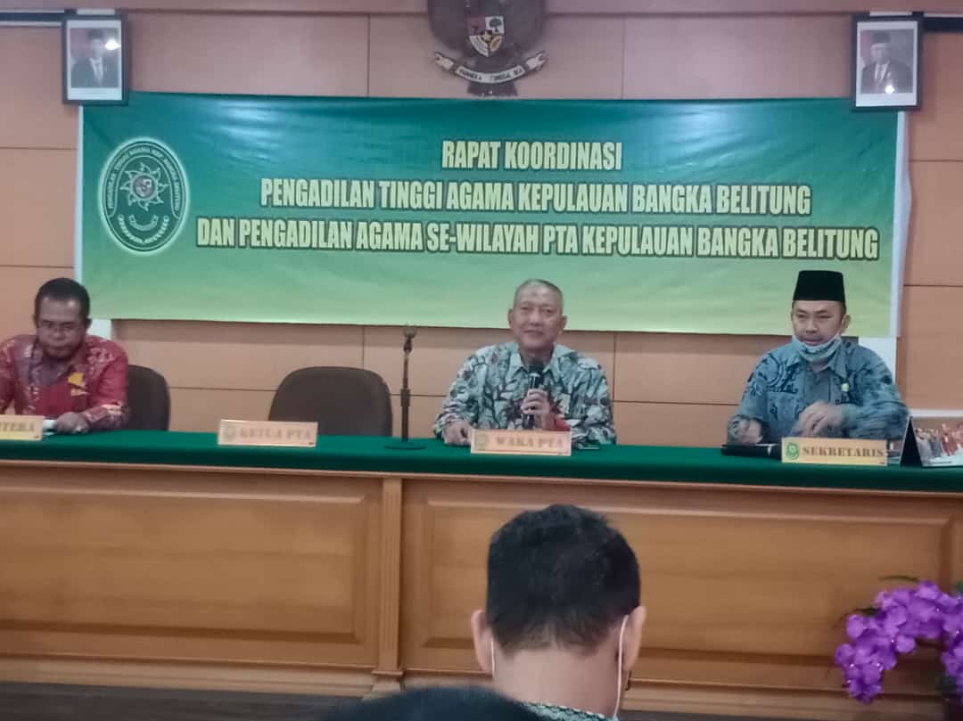 www.pa-mentok.go.id | Pangkal Pinang, 4 Maret 2021. Ketua, Wakil Ketua, Panitera dan Sekretaris Pengadilan Agama Mentok mengikuti rapat koordinasi yang diselenggarakan oleh Pengadilan Tinggi Agama Kep. Bangka Belitung mulai hari Rabu 3 Maret 2021 hingga Kamis 4 Maret 2021 di Ruang Pertemuan Pengadilan Tinggi Agama Kep Bangka Belitung. Rapat koordinasi yang diselenggarkan selama dua hari ini diikuti oleh Ketua, Wakil Ketua, Panitera dan Sekretaris dari seluruh Pengadilan Agama sewilayah Kep. Bangka Belitung.