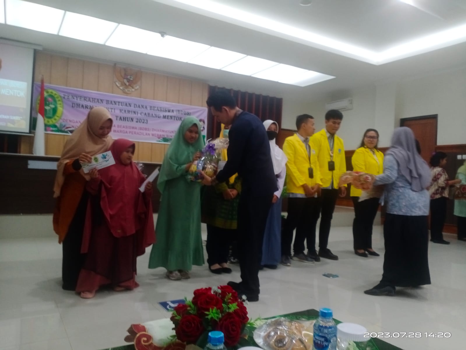 Penyerahan Bantuan Dana Beasiswa (BDBS) oleh Dharmayukti Karini Cabang Mentok