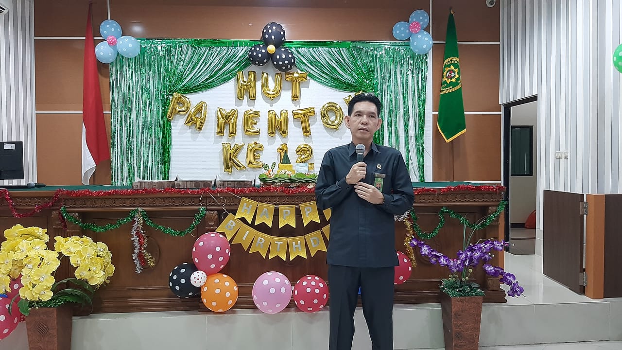 www.pa-mentok.go.id. Rabu, 13 Desember 2023 Pengadilan Agama Mentok melangsungkan Perayaan Hari Ulang Tahun (HUT) Pengadilan Agama Mentok Ke 12 Tahun. Seluruh pegawai pengadilan Agama Mentok dari pimpinan,hakim, para pejabat struktural, pejabat fungsional, staff dan PPNPN serta ketua Dharmayukti Karini PA Mentok dan anggotanya, berkumpul bersama di ruang sidang utama untuk merayakan ulang tahun Pengadilan Agama Mentok Ke - 12 Tahun.